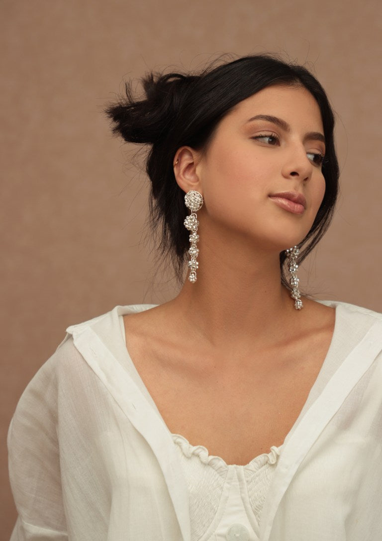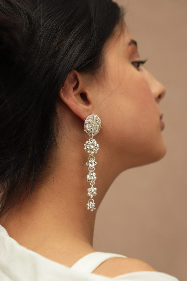 Aretes en cristal espejo dorado o plateado con baño en oro de 24k o baño de plata colgantes en hilo de cobre bañados en oro de 24k y cristales espejo, elaborados 100% a mano por nuestros artesanos.
