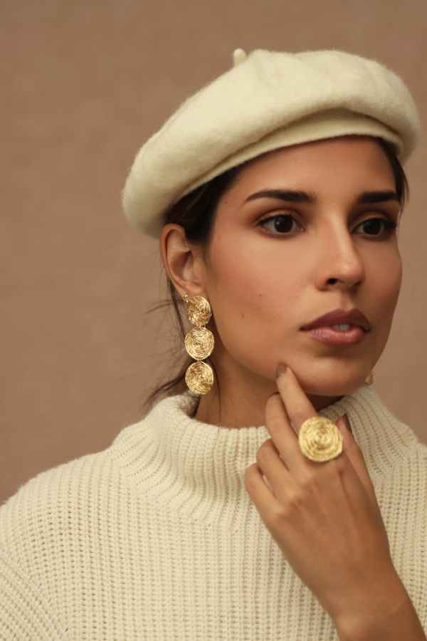 Aretes colgantes en hilos de cobre bañados en oro de 24k y perla, elaborados 100% a mano por nuestros artesanos.
