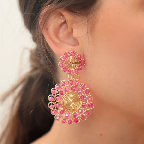 Aretes en hilos de bronce bañados en oro de 24k y piedras de murano, elaborados 100% a mano por nuestros artesanos.