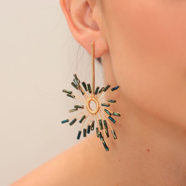 Aretes en hilos de bronce bañados en oro de 24k y piedras de murano, elaborados 100% a mano por nuestros artesanos.