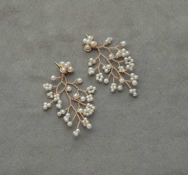 Aretes con perlas tejidas en cobre con baño de oro de 24k o baño de plata elaborado 100% a mano por nuestros artesanos. Sus ramas son abatibles y pueden abrirse o cerrarse a tu gusto para modificar su ancho.