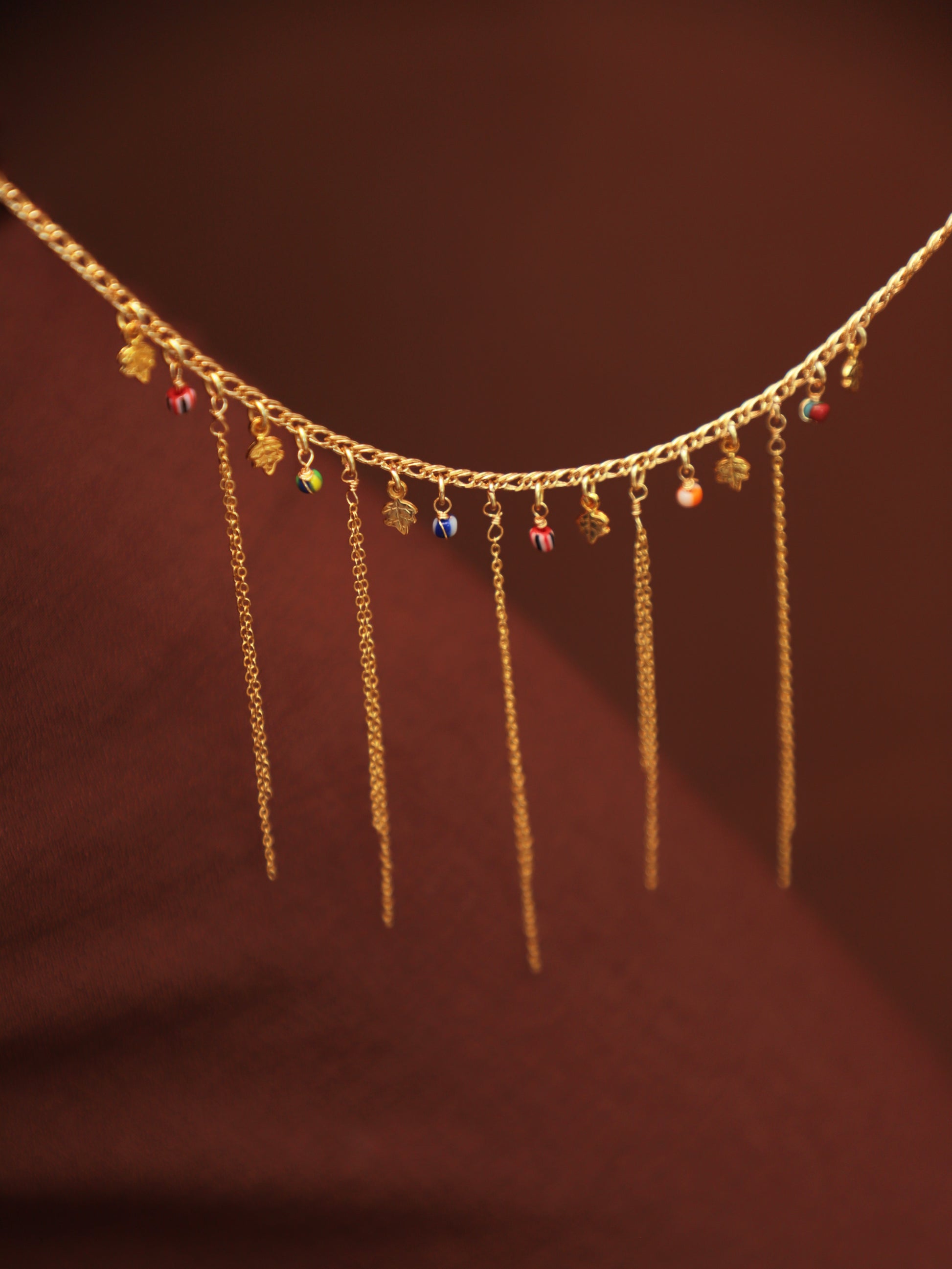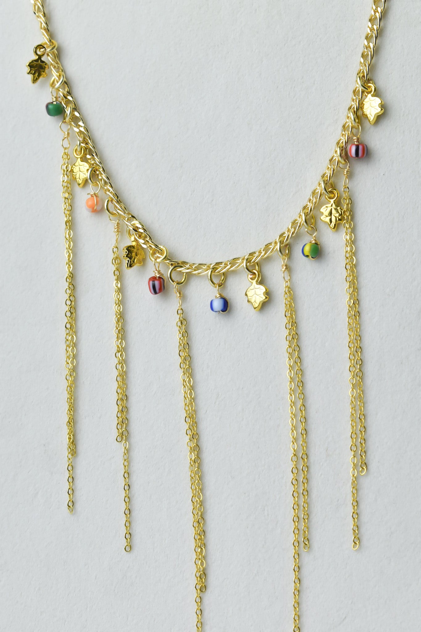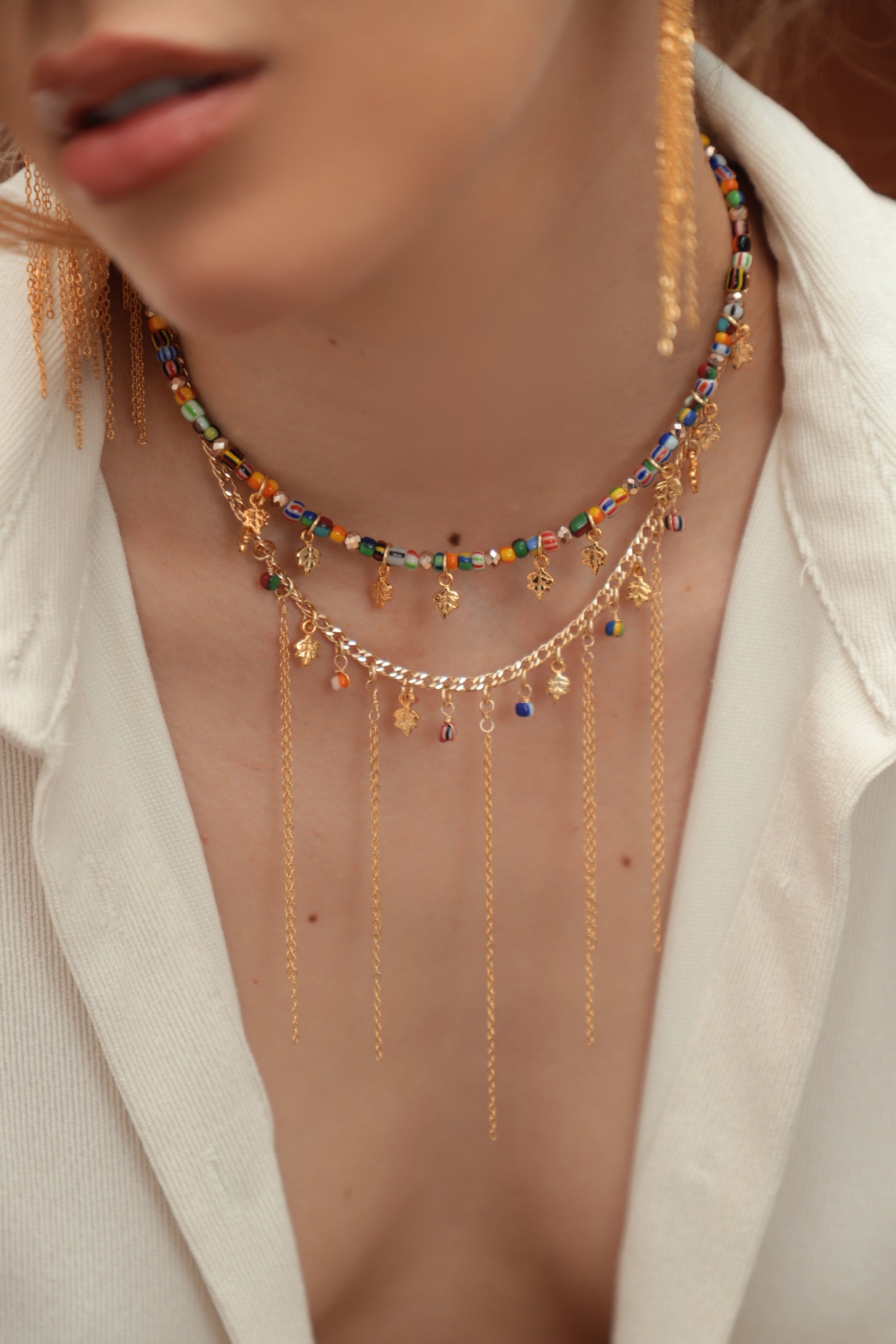 El COLLAR CAMINO simboliza el recorrido de los ríos que fluyen y se unen con el mar, representado en sus cadenas que cuelgan delicadamente.