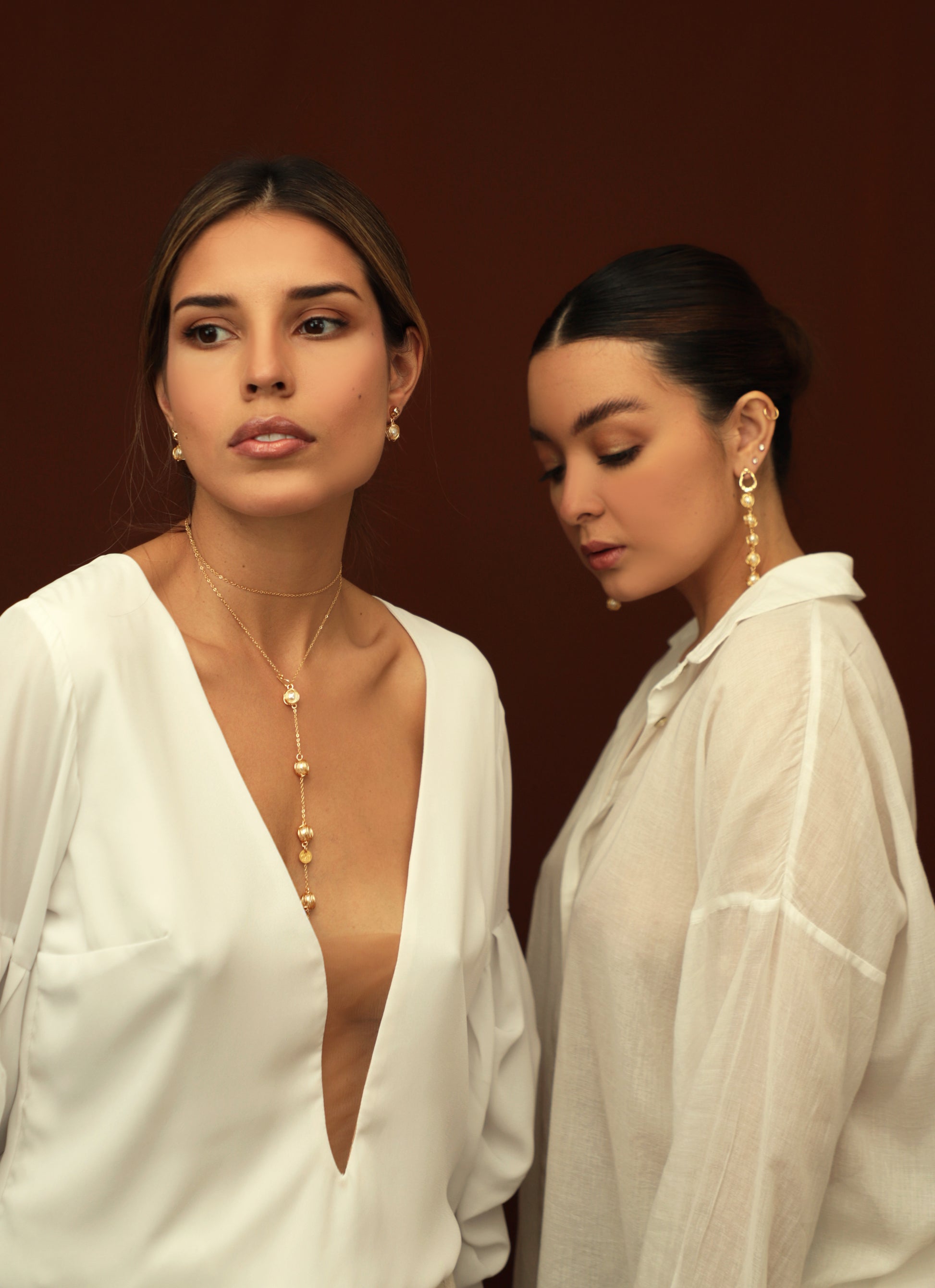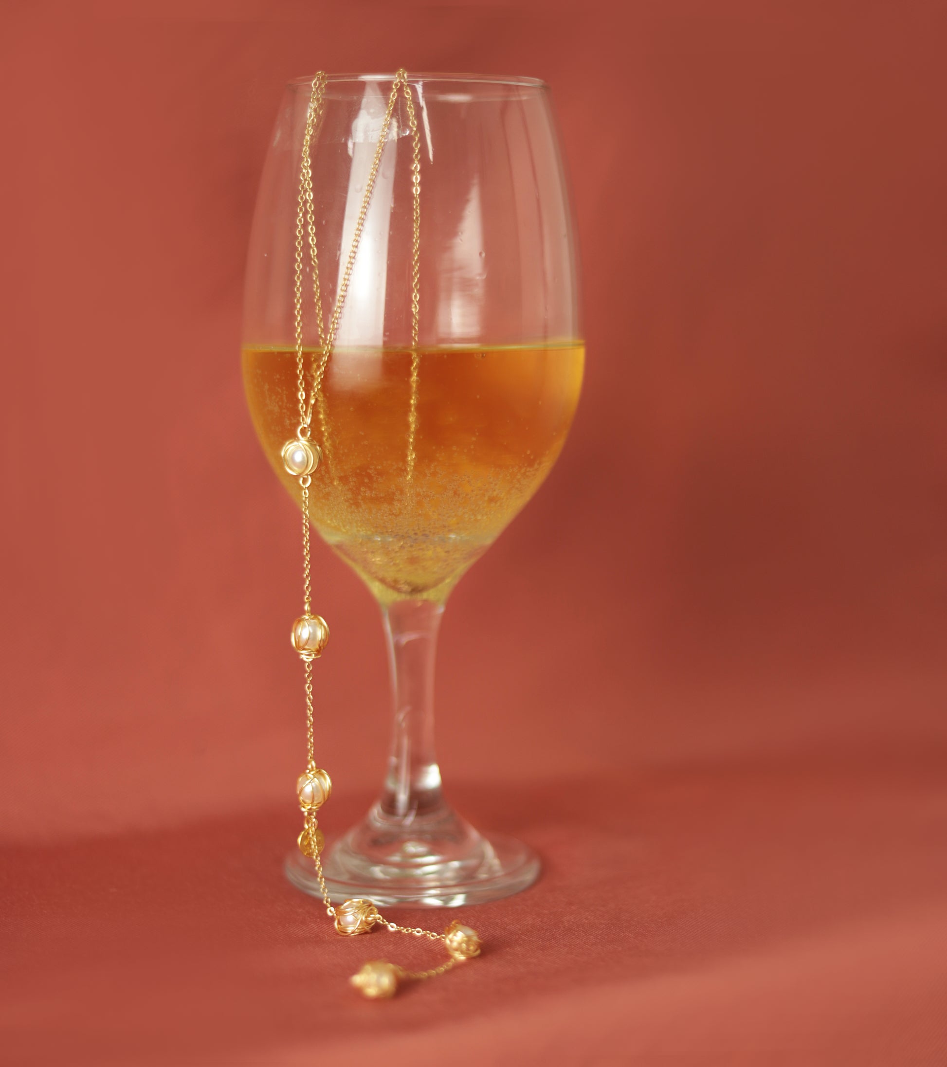 Descubre la versatilidad del Collar Péndulo Perlina, diseñado para ofrecer más de cinco formas diferentes de uso. Elaborado en hilos de bronce bañados en oro de 24 quilates y adornado con perlas de polvo de nácar, este collar combina elegancia y funcionalidad para adaptarse a cualquier ocasión, realzando tu estilo con un toque único y sofisticado.