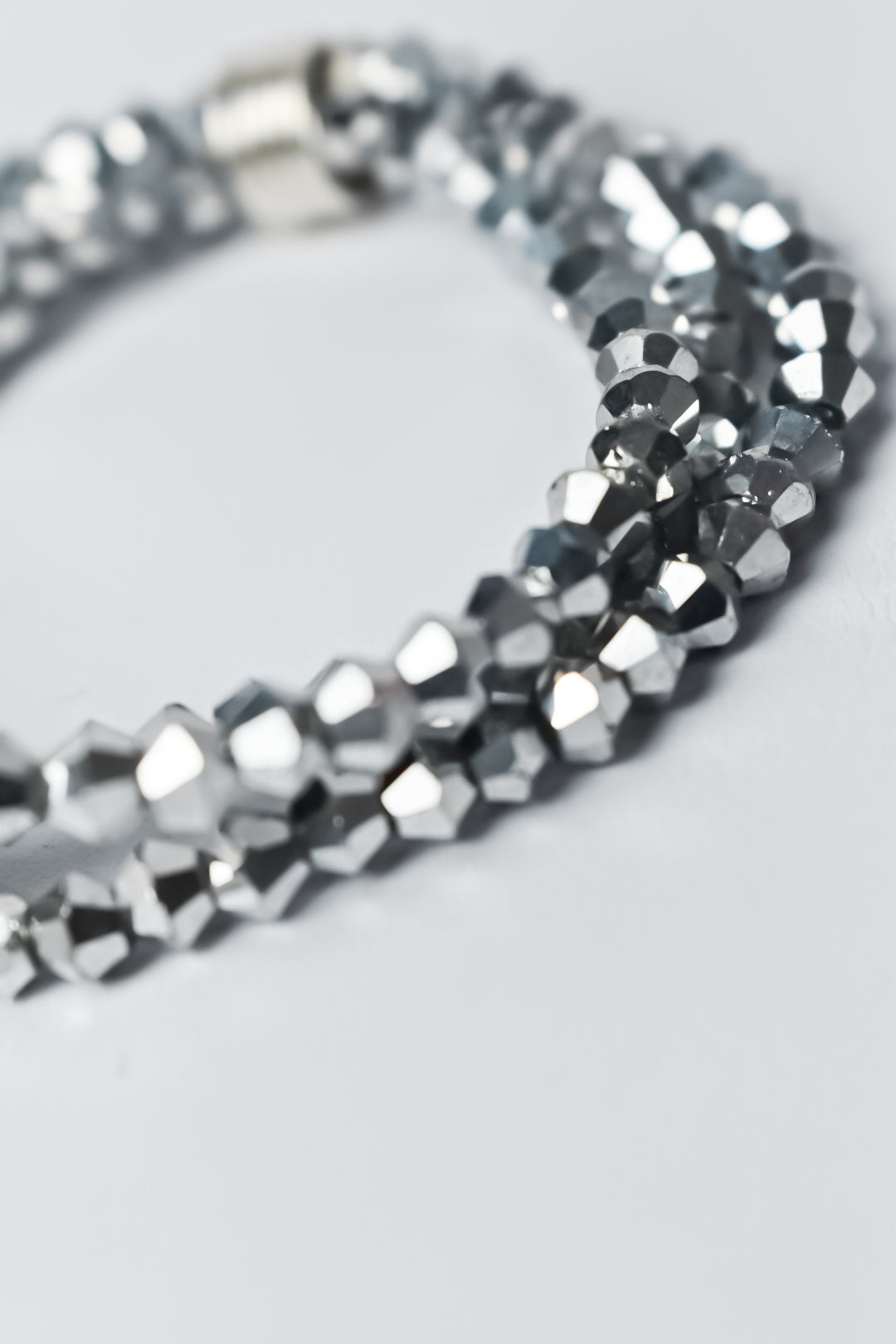 Esta pulsera combina 3 hileras de cristal de Murano con un delicado accesorio de alambre de cobre bañado en oro de 24 quilates, ofreciendo un diseño elegante y sofisticado.