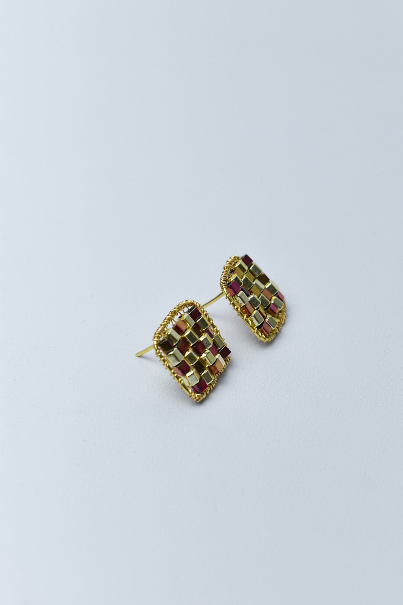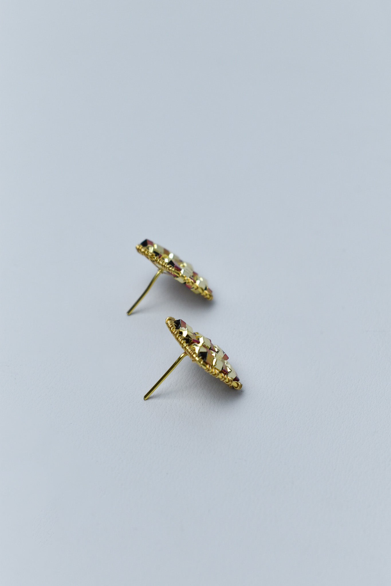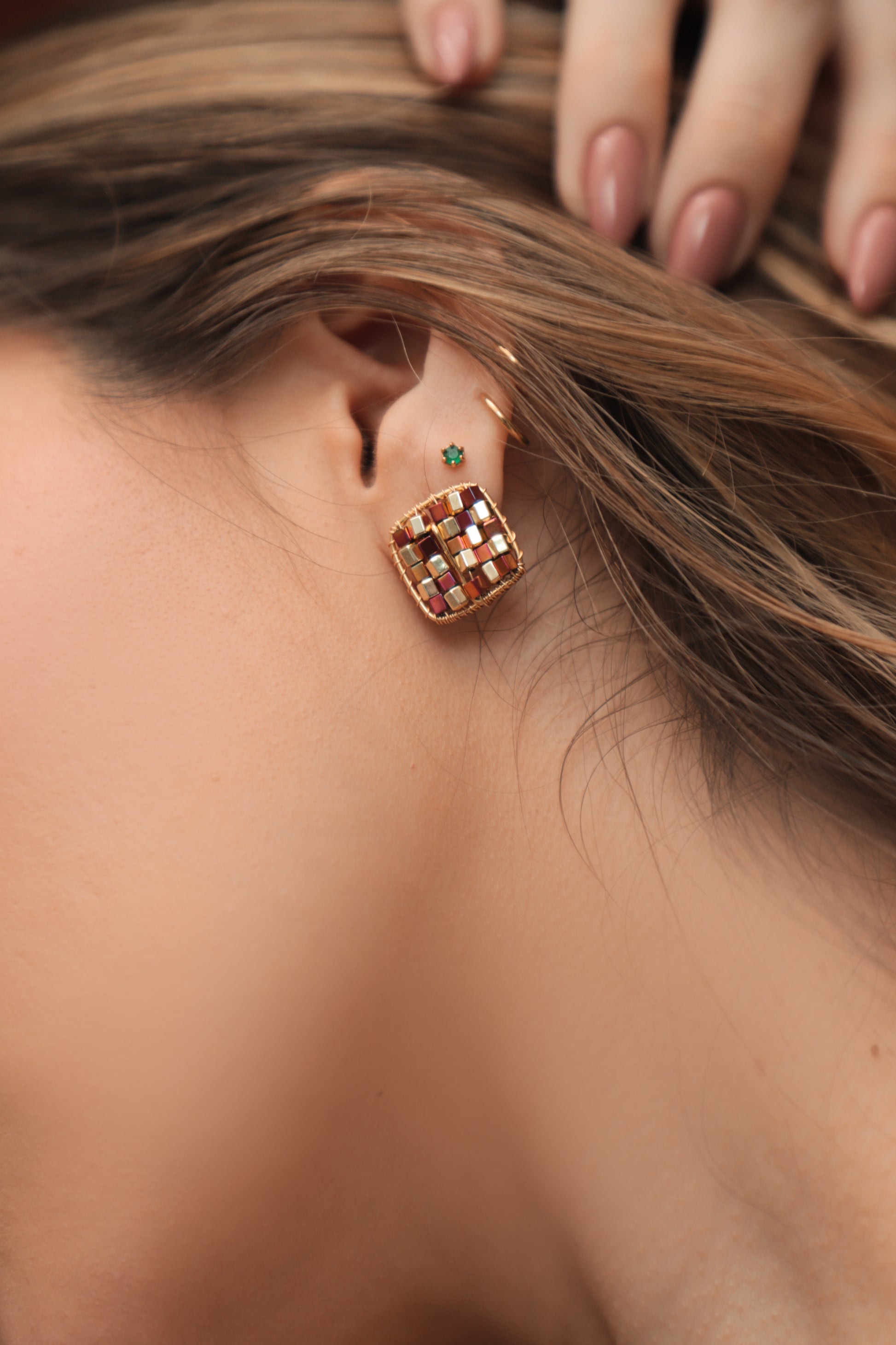 Elaborado con tejido en hilos de bronce con baño de oro y pedrería de acerina multicolor.