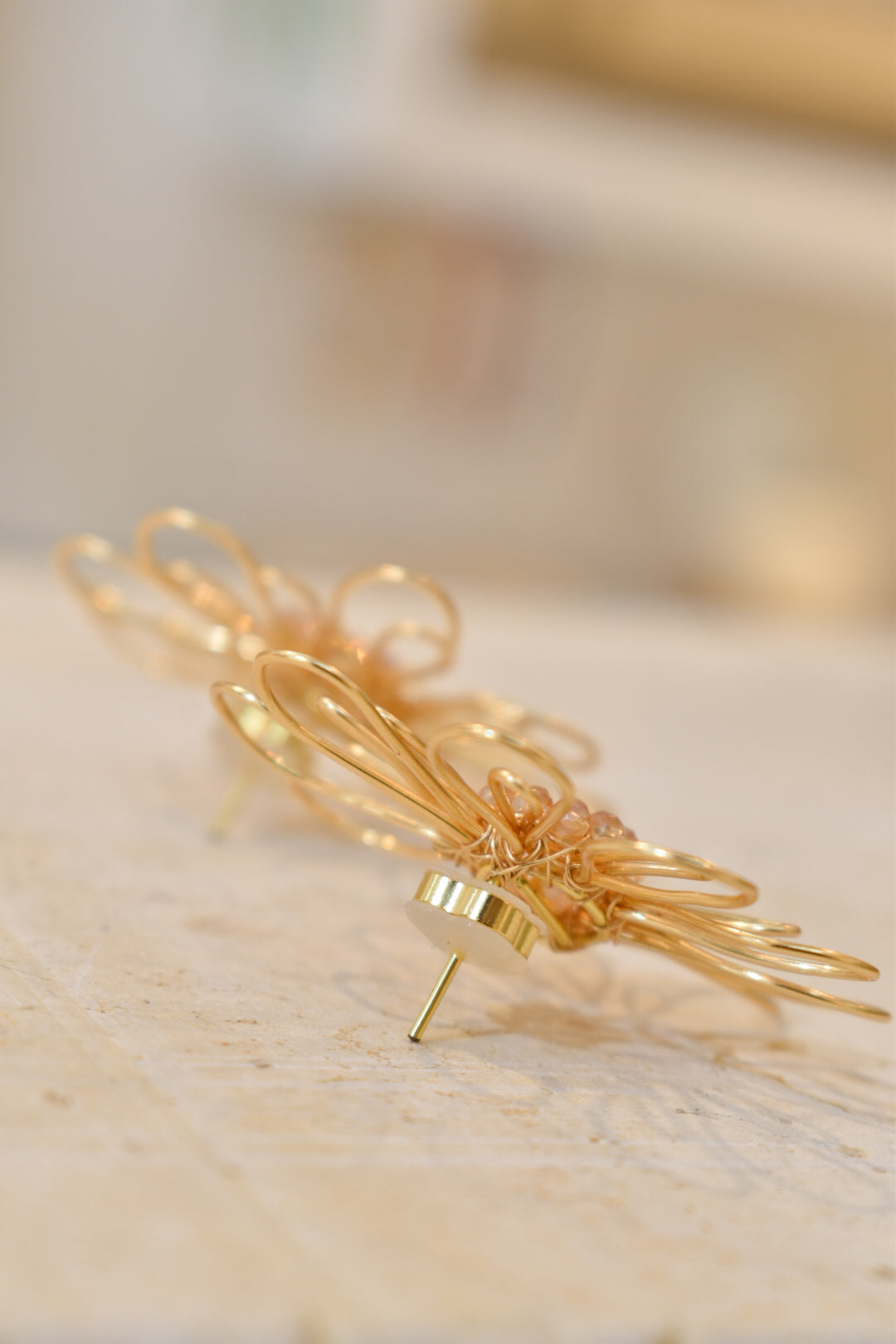 Hechos a mano con técnicas ancestrales, y utilizando pedrería de alta calidad, como ágatas, murano y perlas naturales. Su material es de bronce, bañado en oro de 24 kilates.