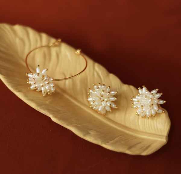 Topos bañados en oro de 24k y perlas, elaborados 100% a mano por nuestros artesanos.