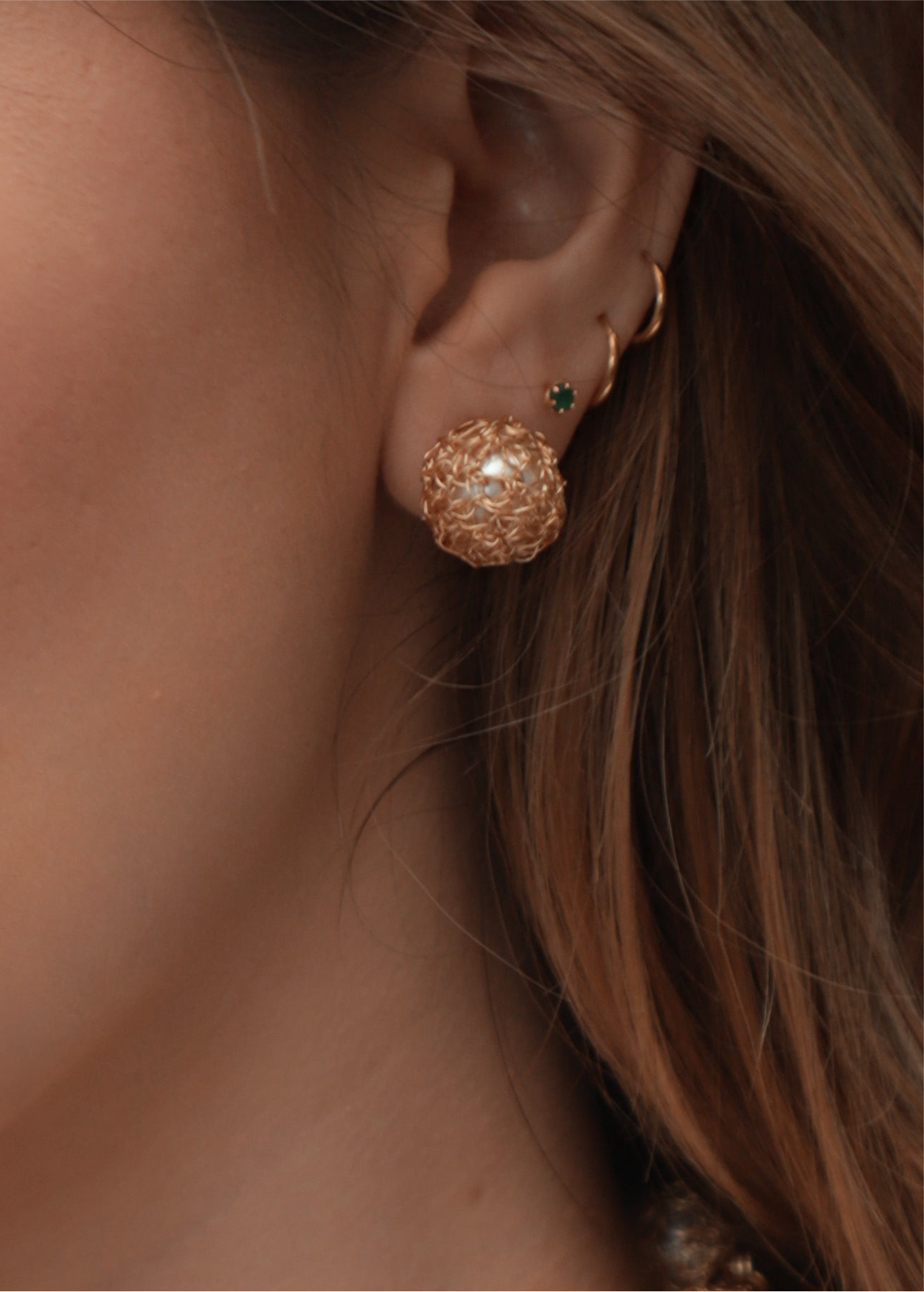 Topos en perlas cubiertas con tejido en hilos de cobre bañados en oro de 2qt